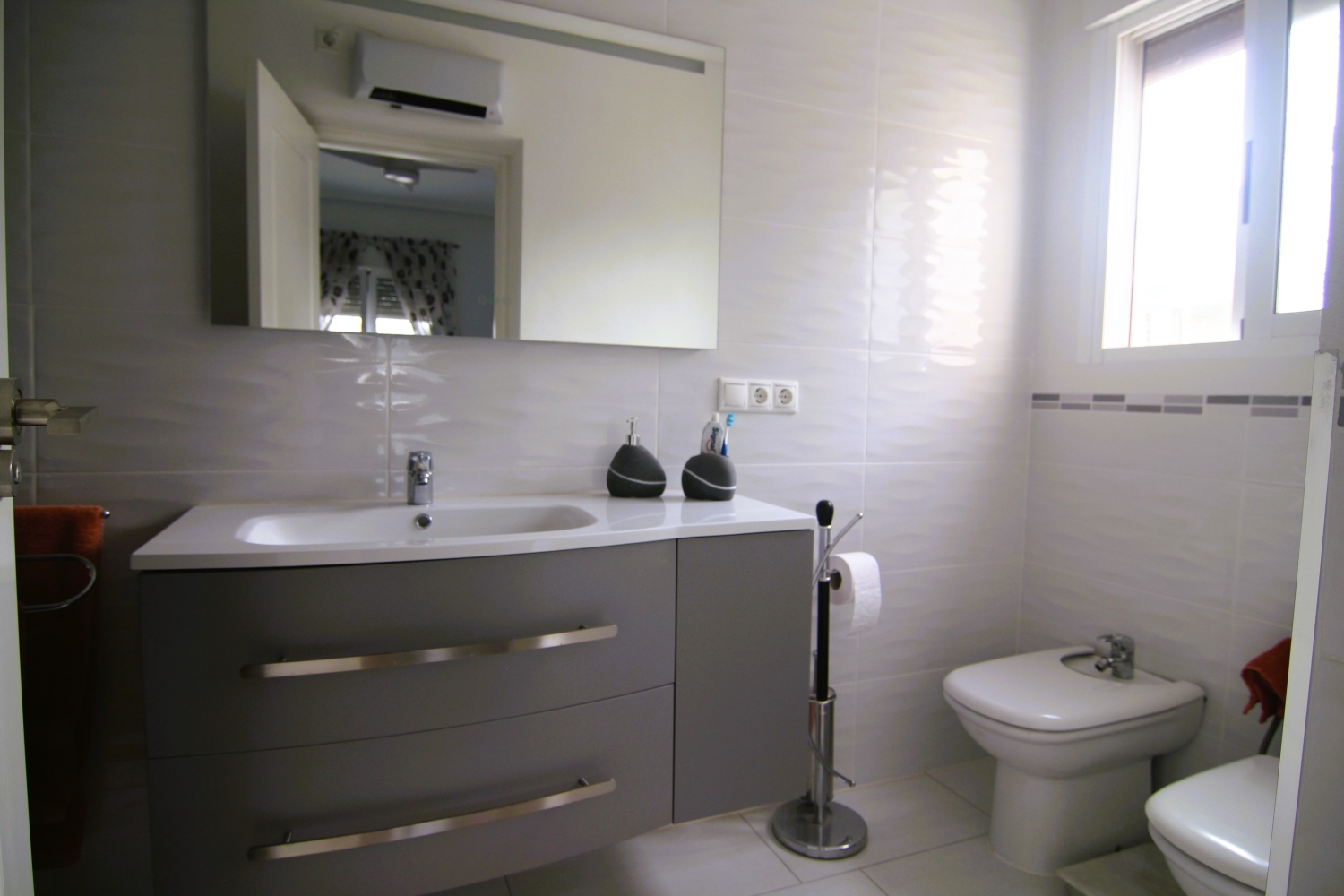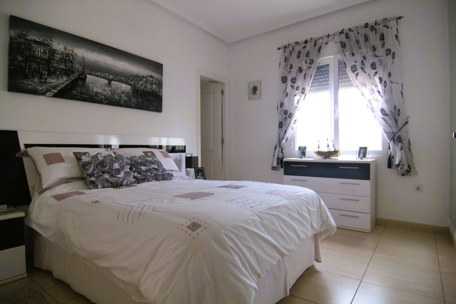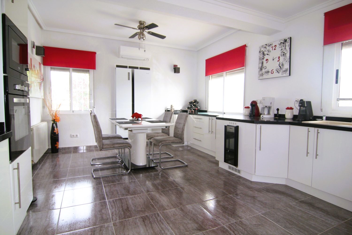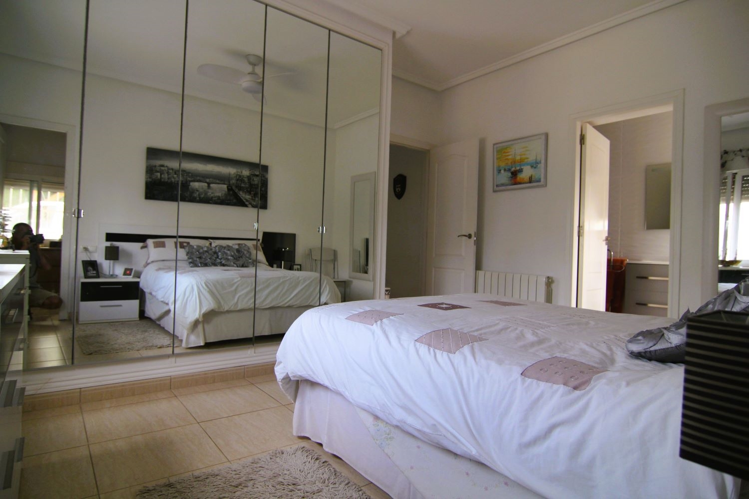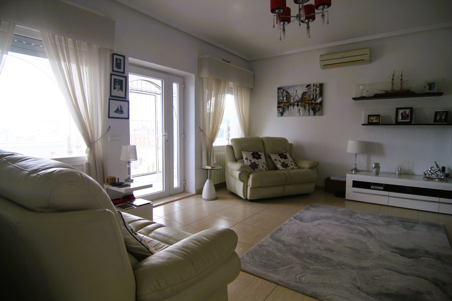Downstairs the rest of the house is distributed over the ground floor, which comprises of a large covered and glazed terrace, with comfortable seating areas. Moving inside the property is a large living room to the right of which is a separate kitchen with access to the exterior. From the living area a hallway opens to the bedrooms and bathrooms the master bedroom benefits from an ensuite and dressing room, the remaining two bedrooms share a bathroom.