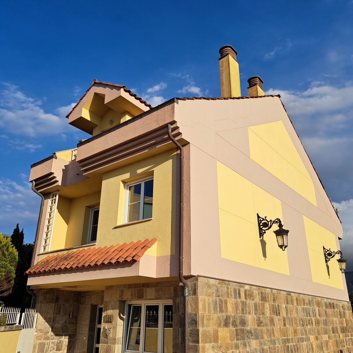 Built on a hill over four floors, the accommodation consists of four bedrooms all with built in wardrobes and one with small balcony with mountain and river views, three complete bathrooms, one complete shower room, one WC, upstairs living room with small balcony with sea views, dining room, fitted kitchen, boiler room with sink, bodega room with sink and double garage with covered, external parking for a third car. Externally there is a wrap around, sunny terrace to the front,